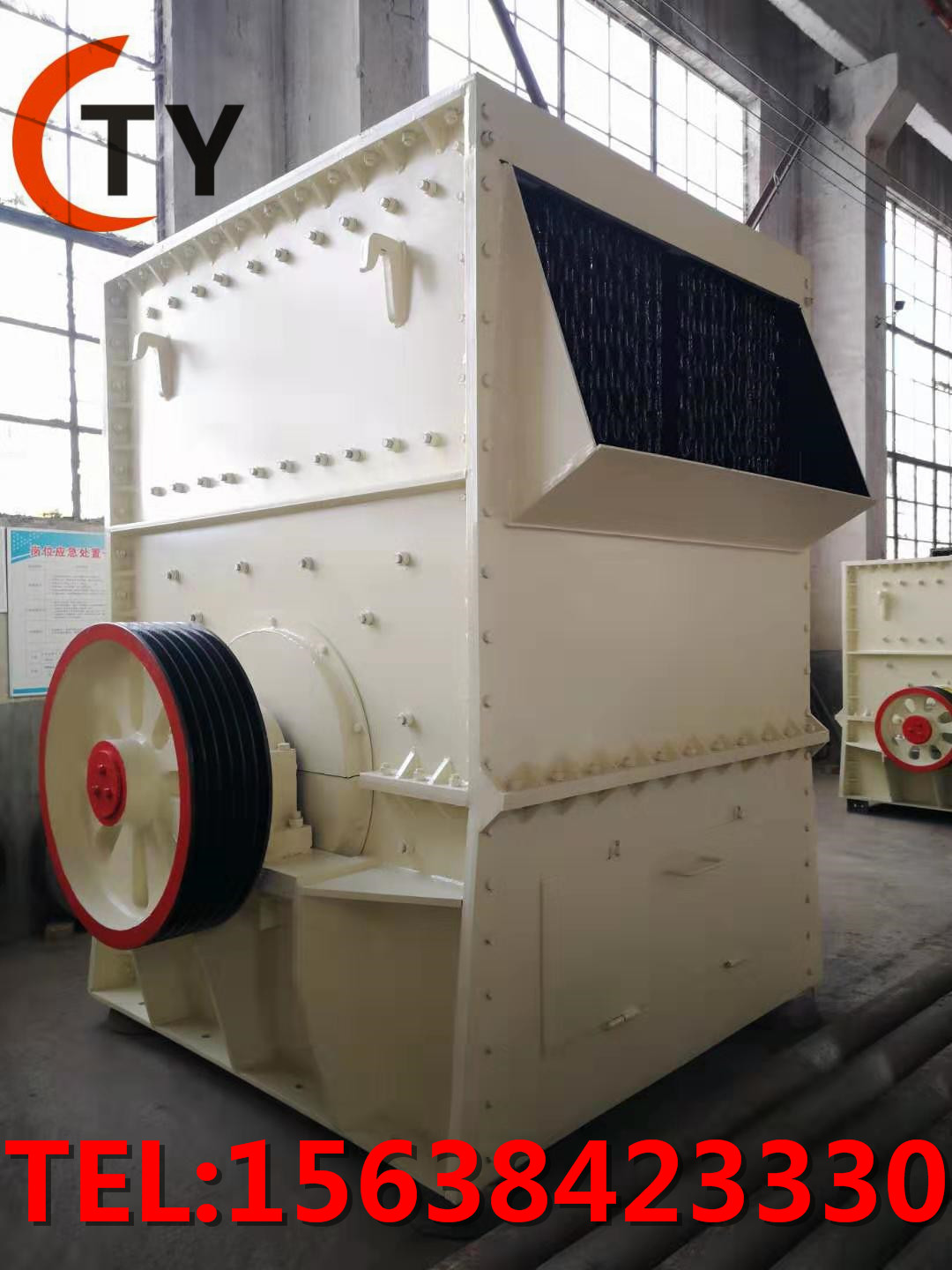 箱式破碎機(jī)的轉(zhuǎn)子盤(pán)在電機(jī)的驅(qū)動(dòng)下,帶動(dòng)錘頭做高速圓周運(yùn)動(dòng),當(dāng)物料進(jìn)入破碎腔后,大塊物料堆放在機(jī)內(nèi)特設(shè)的中部擔(dān)條上,經(jīng)破碎后粒度大于要求的物料隨新物料沿錘頭切線方向打向反擊板再次破碎,從而使粗、中碎一步到位,符合要求的物料經(jīng)篦板均整合格后卸出。
