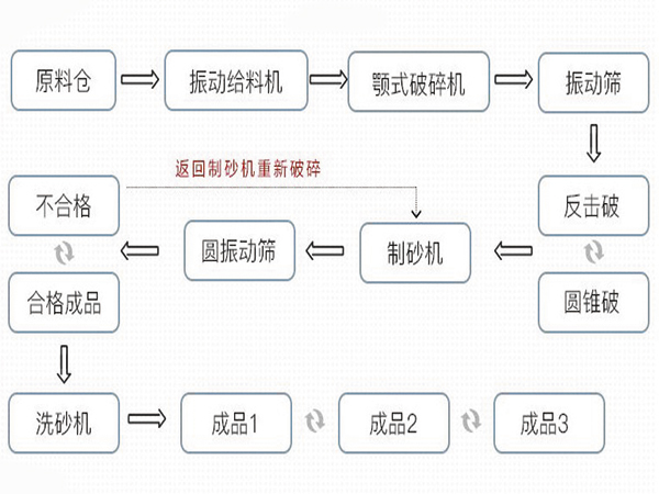 將石頭加工成砂的主要設備有顎式破碎機(用于一次破碎)、圓錐破碎機或反擊式破碎機(用于二次破碎)、制砂機(用于制砂)、洗砂機(用于提高砂的潔凈度)以及篩分、皮帶機等其他輔助設備。