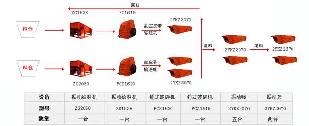 每小時(shí)產(chǎn)1500噸錘式破碎機(jī)石灰石生產(chǎn)線流程圖